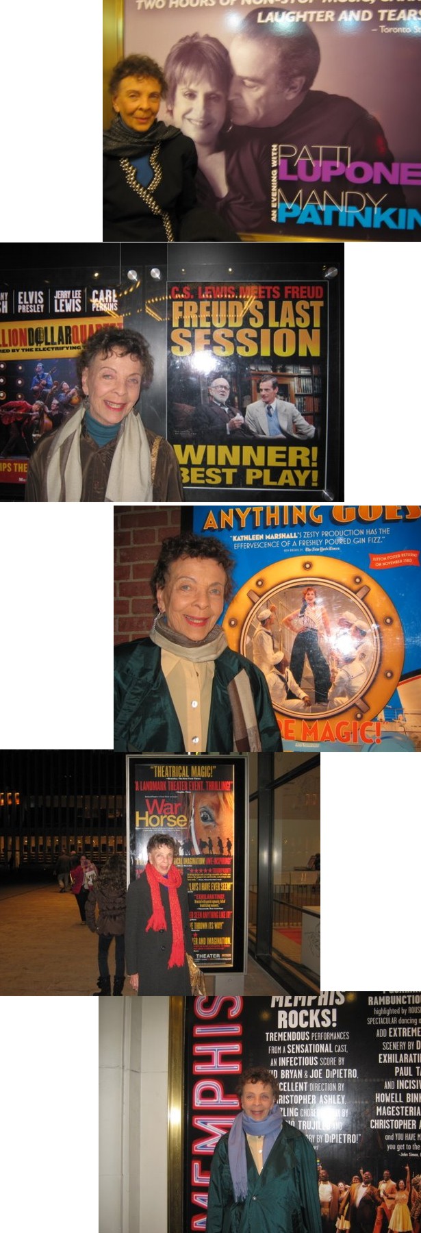 E vejam aqui a Maria Pompeu, devidamente documentada na Broadway, junto aos cartazes dos diferentes espetáculos a que assistiu