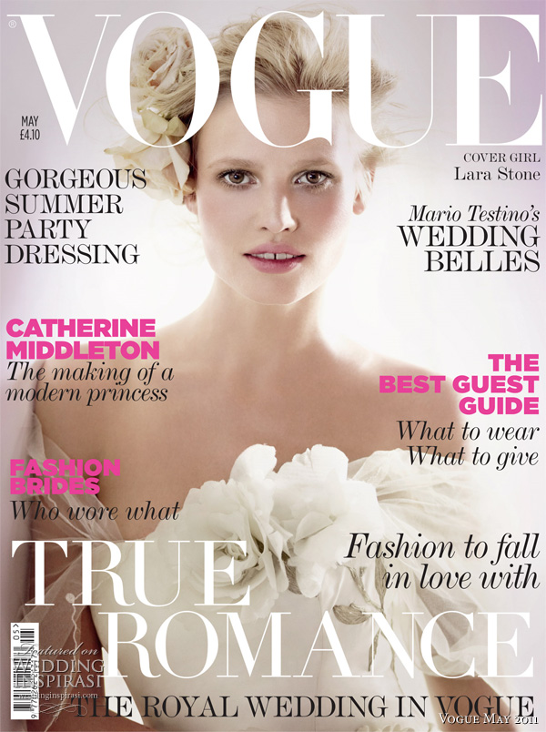 A modelo Lara Stone posou recentemente com um vestido de Oldfield para a Vogue UK