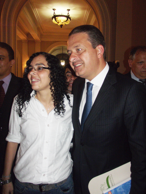 Monica Gonçalves, um jovem valor político e ideológico revelado pelo PSB carioca, e o governador Eduardo Campos