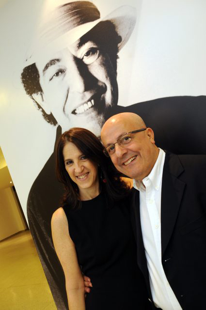 Aniela Jordan e o secretário municipal de Cultura, Emilio Kalil, diante da foto do saudoso João Nogueira