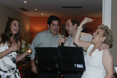 Juliana Moraes, Ivan Londres, Roberto e Maria Célia Moraes, no karaokê